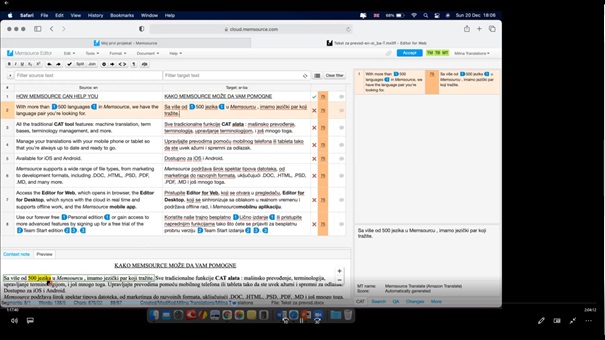Učesnici su imali priliku da se na praktičnim primjerima okušaju u radu u CAT alatu MEMSOURCE. Obuka je održana online, putem ZOOM platforme, a učesnici obuke su dobili i prateće materijale koji će im olakšati početak rada sa ovim, ali i sa svim ostalim alatima za kompjuterski potpomognuto prevođenje.